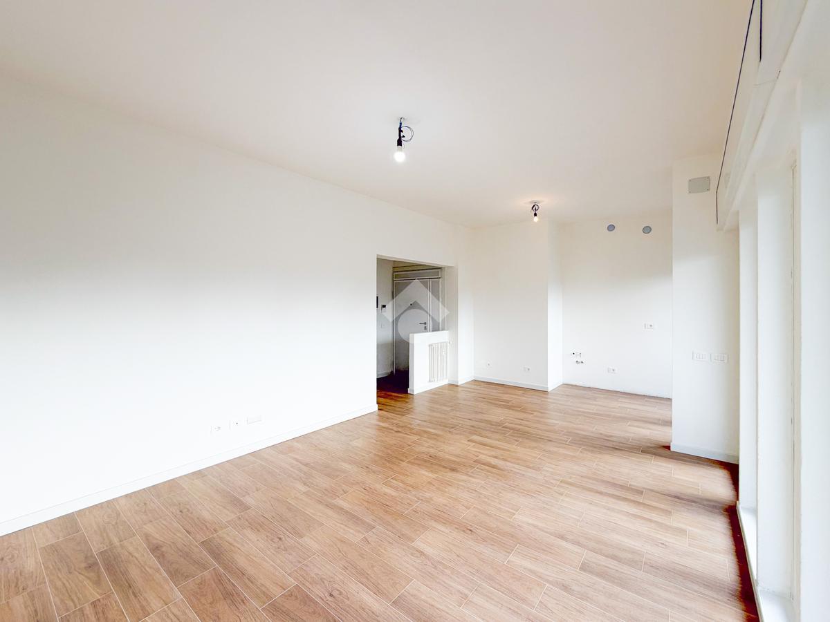L’ingresso conduce direttamente all’ampio soggiorno con cucina a vista, uno spazio moderno e funzionale pensato per la vita quotidiana e per accogliere ospiti. La zona giorno gode di un’ottima luce naturale e ha accesso diretto al balcone vivibile, ideale come spazio esterno da sfruttare nella bella stagione.